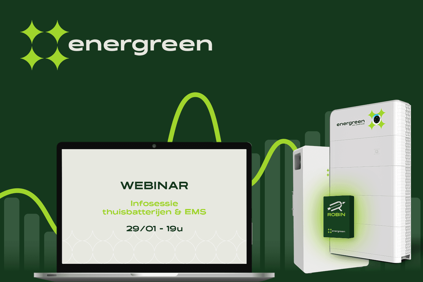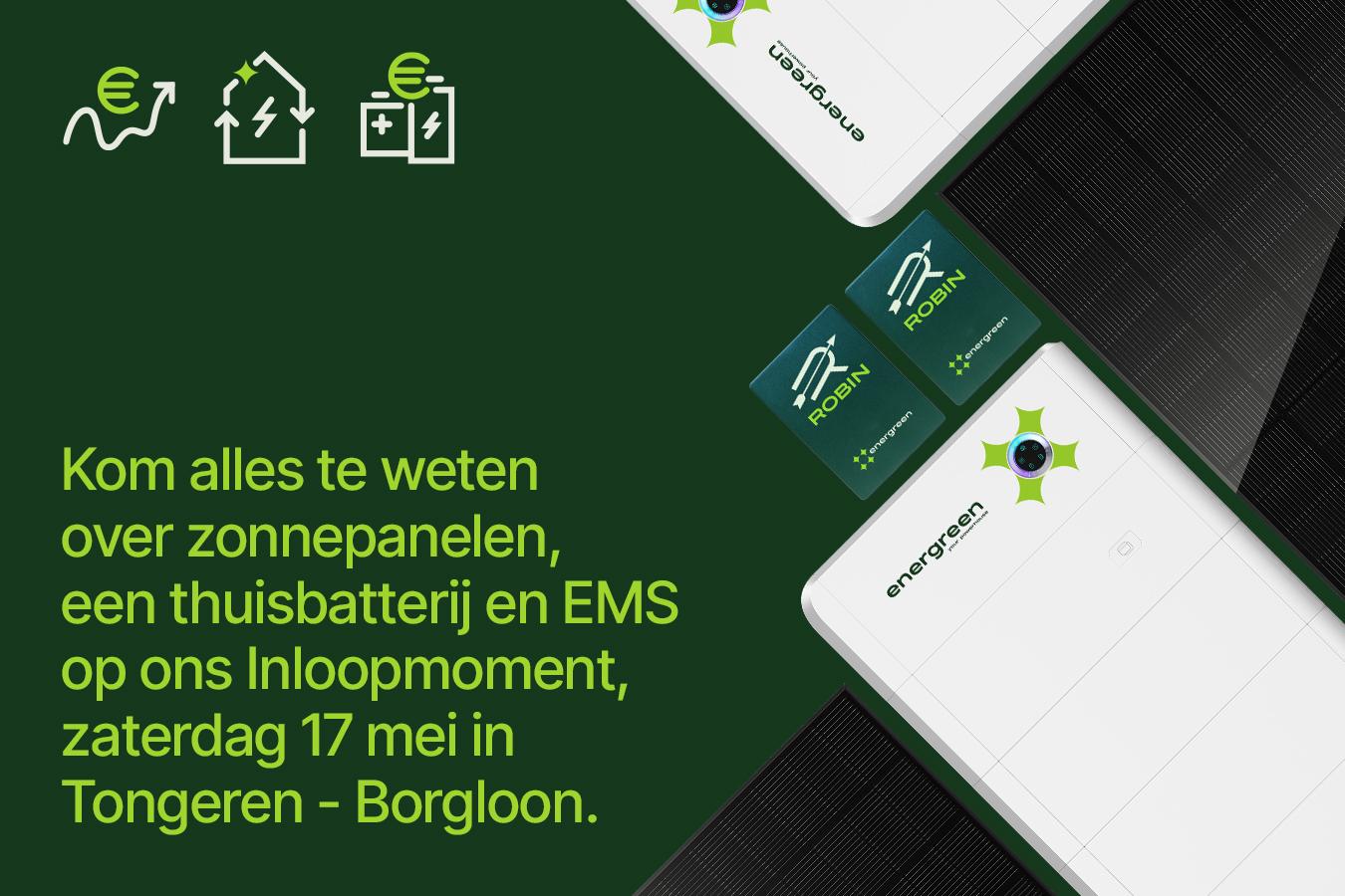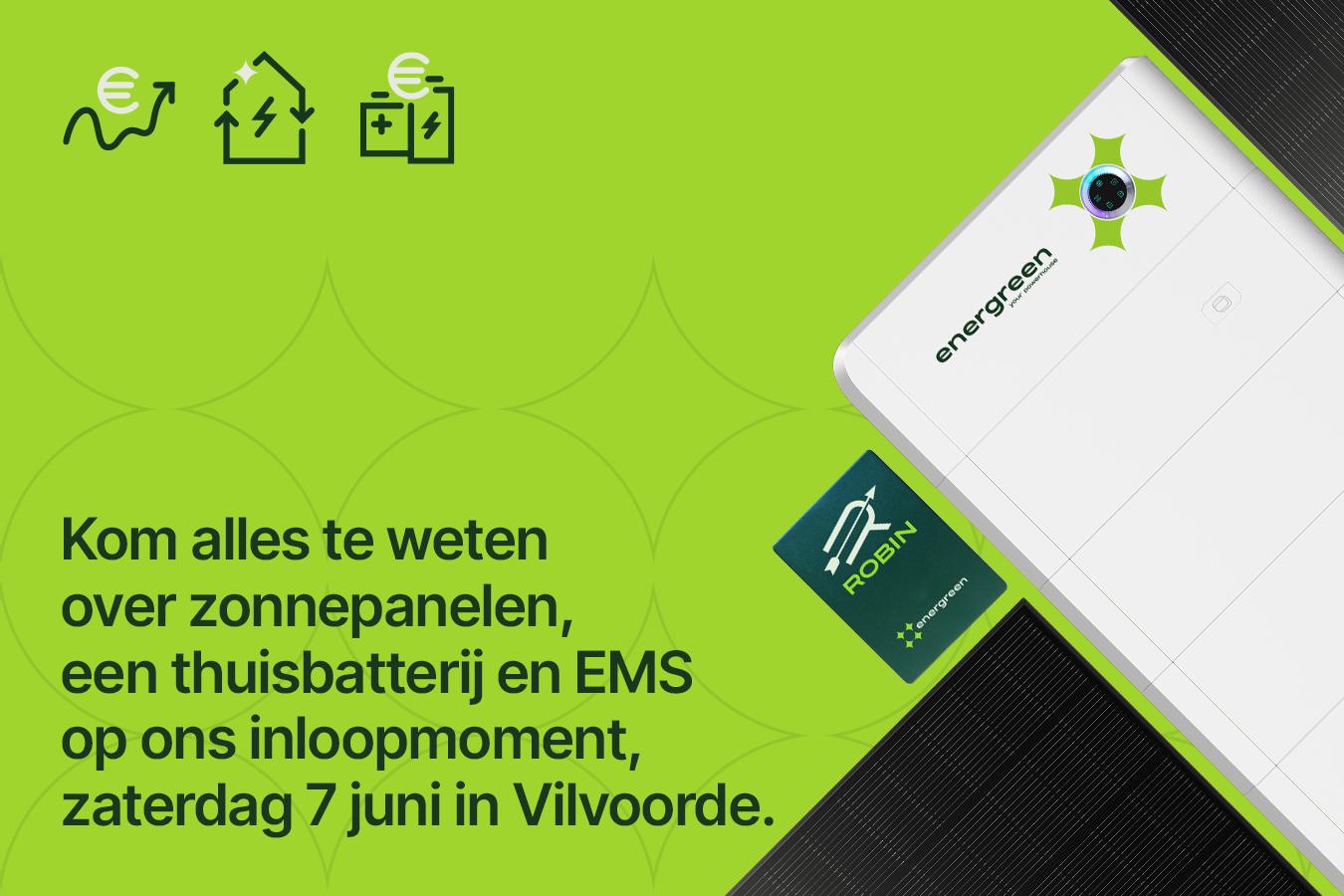 Kom naar onze Inloopavond bij Energreen in Beernem! Ontdek de nieuwste energieoplossingen zoals zonnepanelen, thuisbatterijen en ons slimme energiebeheerplatform ROBIN. Geniet van een rondleiding, een hapje en drankje, en leer over de toekomst van energieverbruik.